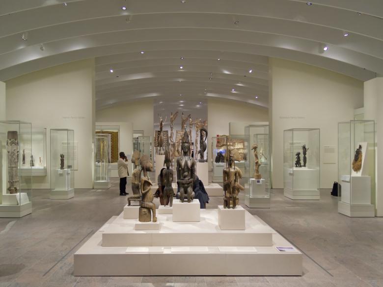 The Met anticipates that most of the visitors to the Rockefeller Wing will arrive via the galleries dedicated to Greek and Roman art, in which case they will first encounter the view above. Formerly, museum goers would have predominantly used the gallery in this location as circulation, as a shortcut to the modern and contemporary art in the southwest corner of the museum's large footprint. Via such features as the vaulted ribs, which refer to the Great Hall and other grand spaces in The Met, and regionally inflected spaces for looking at art, the architects and curators want visitors to stop and explore the renovated galleries and their artworks on display. In one instance, Yantrasast said he looked at the Great Mosque of Djenné as inspiration for the main gallery in the Arts of Africa, designing it as an “enfilade of chapels that allow different cultures to nestle in and have their own sense of place.”