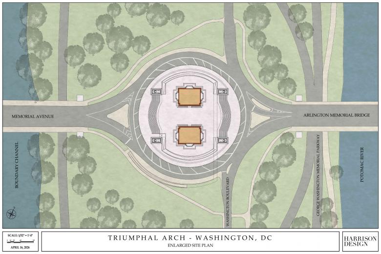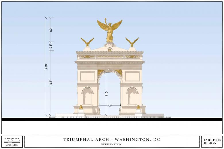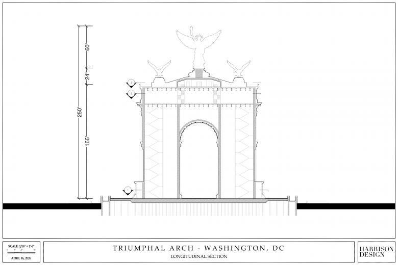 In the six months between April 2025, when art critic Catesby Leigh argued that Washington, DC needs a triumphal arch, and October 15, when Donald Trump revealed a model of a triumphal arch to reporters in the Oval Office in October 2025 (as “Arch de Trump”), the proposed monument grew more than fourfold, from “60 feet in height and width” to 250 feet (76.2m)—a symbolic number aligned with the USA's 250th anniversary this year. Both Leigh and Trump eyed Memorial Circle, a traffic circle on the western side of the Potomac River at the end of the Arlington Memorial Bridge (image above), for an arch. Curiously, an Independent article today quotes Rodney Mims Cook, Jr., chairman of the Commission of Fine Arts, saying DC actually needs three arches!
