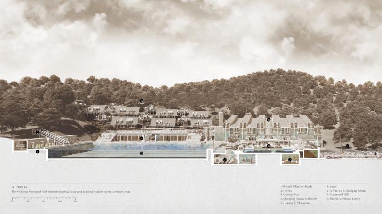 A collective of marginalized citizens gathers at the water's edge of Piscine Luminy, united by a vision to revive this once vibrant civic oasis. Through a construction-driven Radical Municipalism, they aim to reimagine/restore the beloved municipal pool, reclaiming it for the people of Marseille.