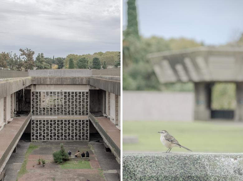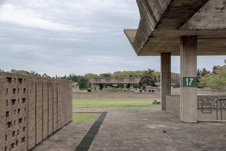 She could not have imagined—or perhaps she could—that an invitation to stroll through Chacarita Cemetery, hardly a tourist destination, would change her life. It was then that she first encountered the Sixth Pantheon face to face. It did not happen suddenly—or at least, that is how I read it in her telling—but rather as a gentle promenade, leading her to a green surface where elegant concrete roofs seemed to “levitate,” scattered across the landscape. She heard the sound of plants, perhaps stirred by the wind, and glimpsed tree canopies emerging from some hidden depth. She approached and she saw it. The work evoked an emotion she had never felt visiting any other architectural project in the world. She had the intuition that she had discovered something significant and she was right.