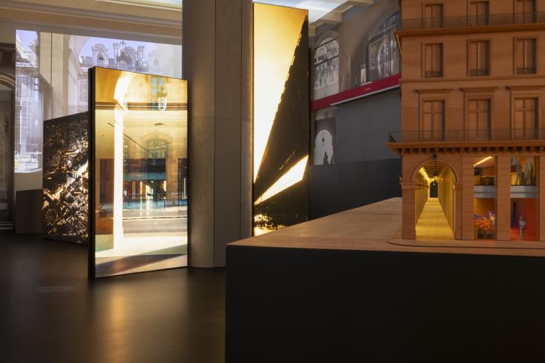 Last year, when The Fondation Cartier pour l'art contemporain celebrated its 40th anniversary, the Parisian institution announced it would be moving from its historic Jean Nouvel-designed building on Boulevard Raspail into a Haussmannian building next to the Louvre. That move will be taking place later this year—the grand opening at 2 Place du Palais-Royal will be on October 25, to be precise—but in the meantime visitors to Venice can learn more about Nouvel's design of Fondation Cartier's future home in The Fondation Cartier pour l’art contemporain by Jean Nouvel at Fondazione Giorgio Cini on the island of San Giorgio Maggiore (May 9 – September 13, 2025). Although split into three rooms, the bulk and focus of the exhibition is in the first gallery, where angled walls, mirrored surfaces and projections, a large model, and numerous booklets with drawings and photographs reveal how an institution focused on contemporary art will occupy the lower floors of a large, 150-meter-long building from 1855.