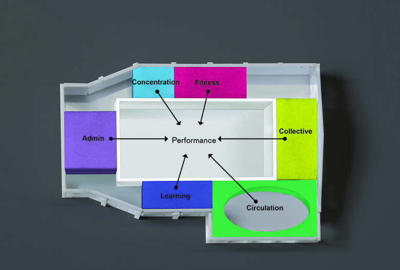 MAI exhibits the traits that many of these cultural projects share. For example, with strong individual clients like artist Marina Abramović, the architectural programs often veer far from the norm. MAI is not solely a performing arts center; it is an educational center that trains people to take part in long-form (more than six hours) performances, in effect becoming part of the artwork. A central performance space (its size and location echo the building's former lives as a theater and tennis center) is overlooked by all of the other spaces—the classrooms, the library, the sleeping chamber, the levitation room, the crystal room. (As I mentioned, it's not your typical program.) Marina Abramović announced the project designed by OMA's New York office last Spring, launching fundraising efforts that are pointing to a construction start later this year.