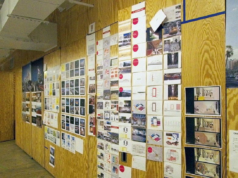 OMA's New York office is one of four around the world for the 300-strong firm started by Rem Koolhaas in the mid-1970s—the main office is in Rotterdam and the other two are in Beijing and Hong Kong; a fifth is planned for Doha. The New York office currently employs 40 people who fit comfortably into the corner space. Like a lot of architecture studios the plan is primarily open, reflecting the egalitarian nature of the office. Two sides of the rectangular open space are bordered by windows, and the other two house conference rooms and service spaces (kitchenette, model shop, supplies). A first impression is that space is quite humble for one of the most well-known and celebrated architecture firms in the world.