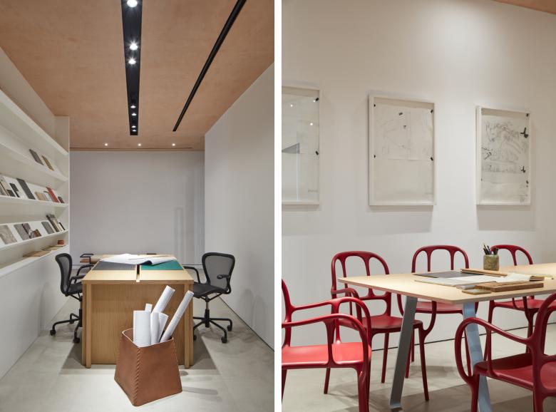 Looking around, the space was calm and tranquil, with soft music playing in the background adding to the relaxed atmosphere. Neutral-toned walls and a bookshelf filled with coffee table books and architectural publications were spread linearly across from a long table where most of the employees worked—a masterclass in open-plan design. Tarik, equally casual in slacks and a baseball cap, welcomed me into his office—the only other closed-off room alongside the adjacent meeting room, both with glass windows and doors to emphasize the openness of the space. He began to tell me about his practice.