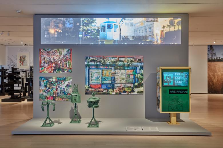 Olalekan Jeyifous's The Frozen Neighborhoods. (Installation view of Reconstructions: Architecture and Blackness in America, The Museum of Modern Art, New York, February 27, 2021 – May 31, 2021. © 2021 The Museum of Modern Art. Photo: Robert Gerhardt)