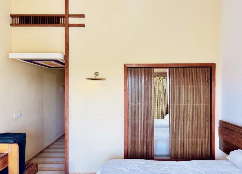 On the western side of the complex, Zevaco built 71 courtyard bungalows of one, two, and three rooms, each with a terrace, which were intended for families. Between the units, wooden pergolas covered with bougainvillea created shaded paths leading to small squares. This complex has been closed since 2003 and is now in poor condition. Vegetation has overgrown the paths and courtyards, and the water channels and pumping system here are also broken.