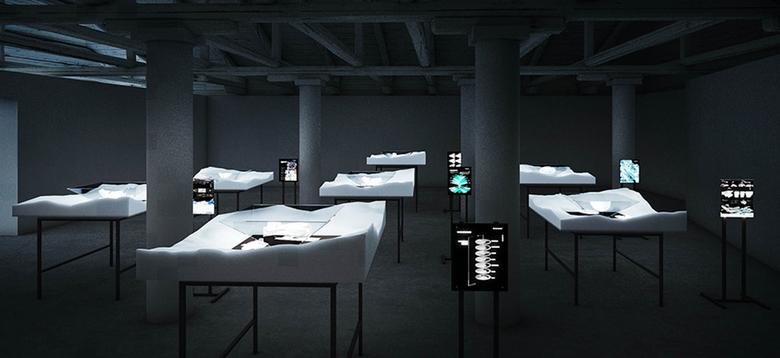 The 65 national pavilions represent countries on six continents – all but Antarctica. Curator Nadim Samman sees the frozen continent as a cultural place and this installation (existing outside of the official programming in the small, un-palatial Fondaco Marcello overlooking the Grand Canal) displays projects by Hani Rashid (of Asymptote Architecture) and the Institute of Architecture, University of Applied Arts Vienna. The projects deal with practical issues – food production, technology infrastructure, scientific research, energy production – that yield fantastical forms clearly sprung from the working in the computer environment. The designs are displayed through videos and hologram-like projections within a darkened room – a dramatic display that makes them looking convincingly correct in their icy context.