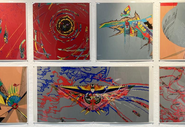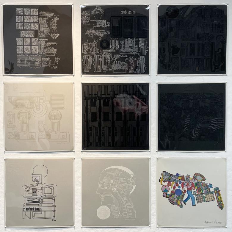 The second installment opened on January 21 in the same hallway, where it will be on display until February 13. Covering the years 1986 until 1991, one year after Boyarsky's death, the second batch of seven Folios features projects by Bernard Tschumi, Andrew Holmes, Eduardo Paolozzi, Günther Domenig, Shin Takamatsu, Coop Himmelblau, and Kikō Mozuna. Befitting the square format, the plates are mounted behind acetate in gridded displays, while the catalogs with essays and interviews are provided for perusal.