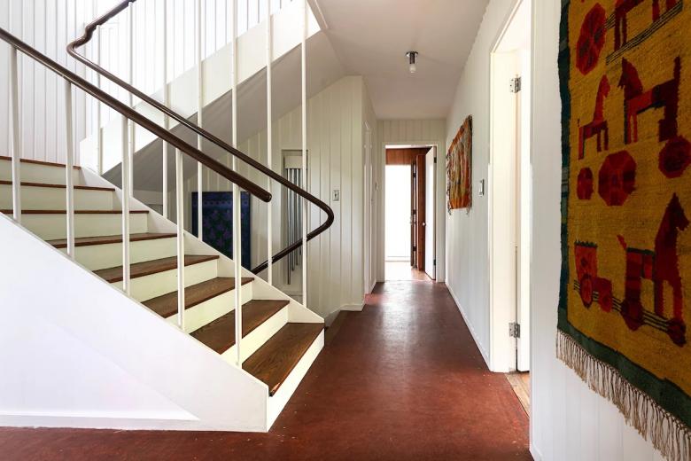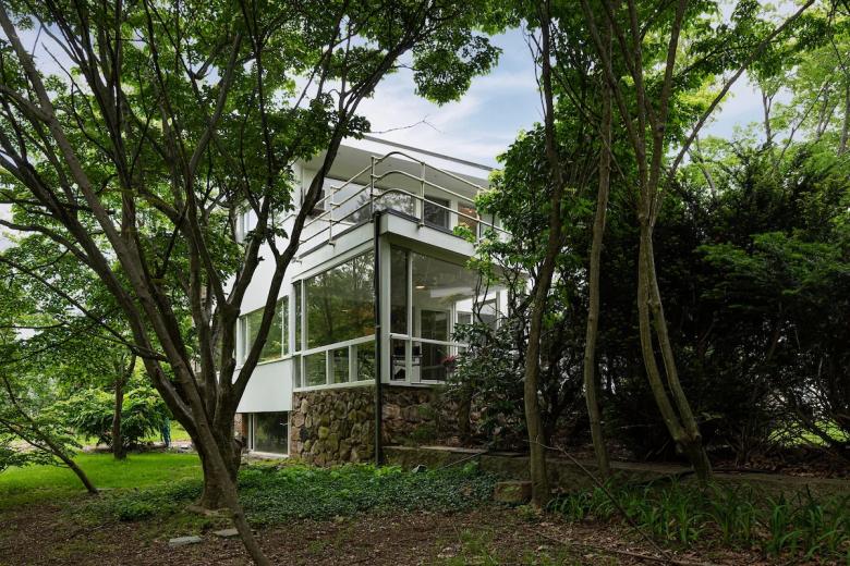 The 1941 house for sale resembles Gropius's own 1938 house, now a museum, in Lincoln, Massachusetts, especially when seen from the front (top photo), while the contrast between the rough stone surface and lacquered timber recalls Breuer’s own 1939 house, also in Lincoln.