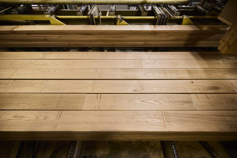 Here are a few photographs of the manufacturing of the red oak timber beams at neue Holzbau, a Swiss company known for engineering and manufacturing complex timber structures, often in hardwood: