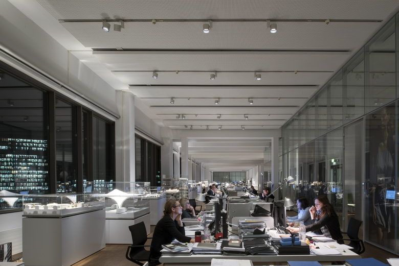 Ingenhoven architects are known as pioneers of ecologically sustainable and technologically progressive architecture. High levels of flexibility, precise execution, and spatial efficiency are the self-imposed principles with which they approach each of their projects. They've successfully implemented architectural projects of all sizes and typologies worldwide and have used ERCO luminaires in many of their buildings, such as the Lufthansa Aviation Center and the European Investment Bank in Luxembourg. They also use tried-and-trusted ERCO lighting tools for illuminating their own offices.