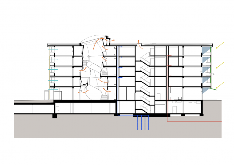 The key to the success of any low-tech construction is to adopt and maintain a holistic planning approach: climate-minded construction should never be viewed separately from broader spatial organization and overall layout design. The night cooling in the new Blumer Lehmann building, for instance, only works because all the company’s personnel work together in large open-plan offices. If the building were full of smaller individual offices, the cool air would not be able to circulate enough.