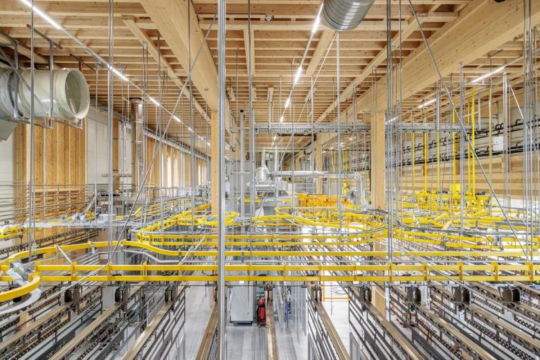 The wooden construction also proved useful when it came to installing the new powder coating facility in which the company’s aluminum window shutters are finished. “It was a totally new experience for our Swiss equipment supplier,” says Martin Barwart, Managing Director of Griesser Austria. “It was the first time they’d installed one of their plants within a wood construction. And they found they could attach all the equipment and suspension systems directly onto the building’s structure. The greater tolerances here compared to a steel building construction proved beneficial, too: we were able to easily make minor adjustments throughout the installation.”