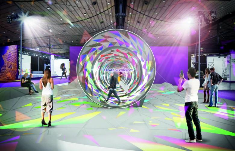 Schmidhuber has again conceived a project for this year's keynote theme "Create'n'Connect": The "Connectivity Wheel" is both visual attraction and playful interaction. (photo: Schmidhuber)