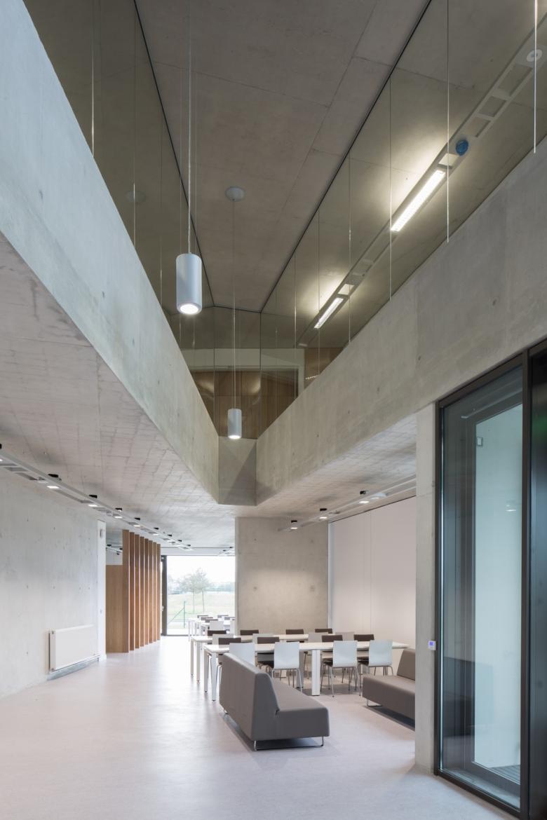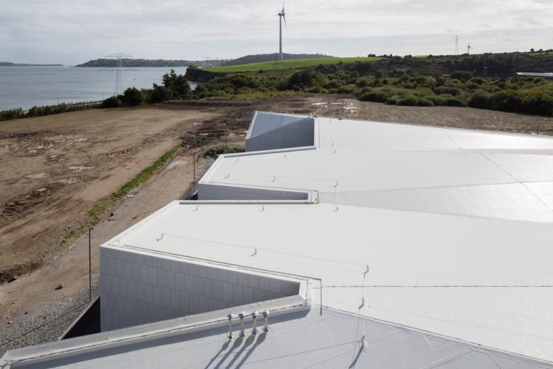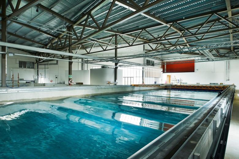 Conceived as a stone outcrop on the edge of the water, subject to the action of wind and sea, the plan form is driven by the size and relationship of the four testing tanks, used alternately still or agitated with paddle mechanisms and profiled floorplates to simulate wave action, coastal erosion, ocean floor modelling.