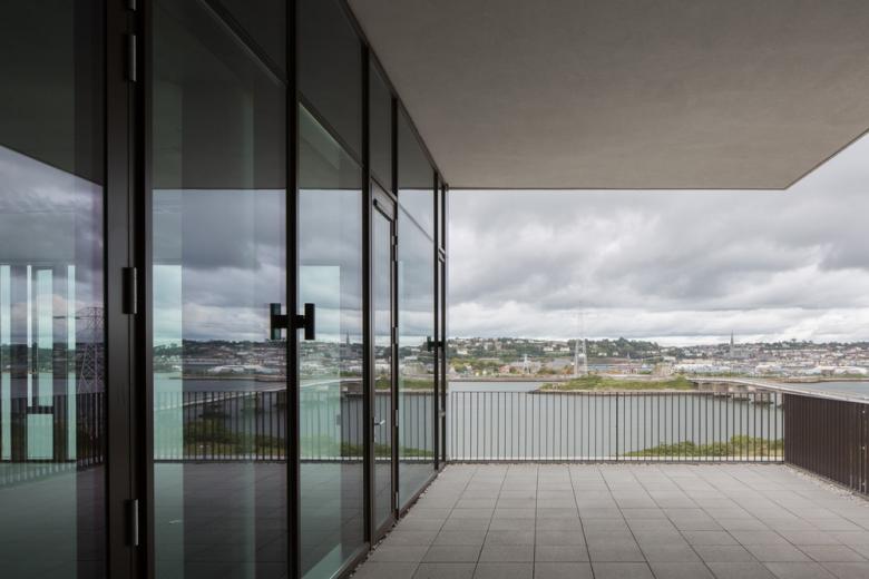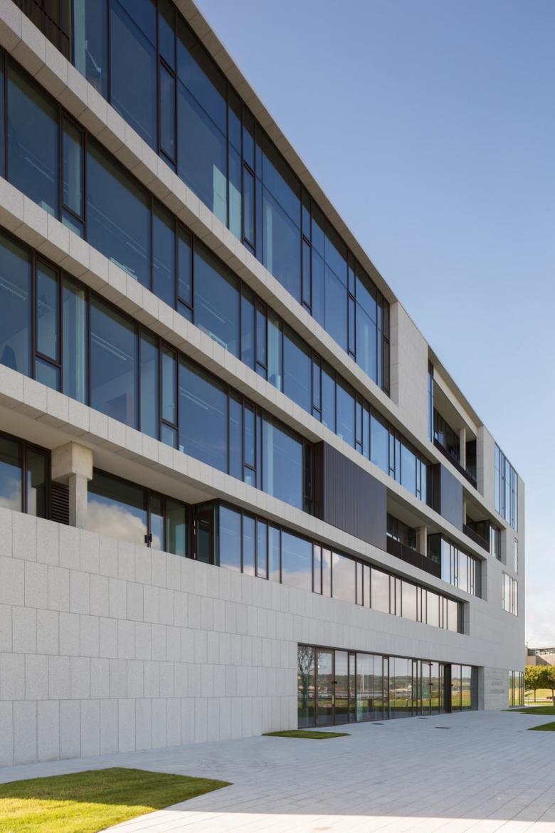 Continuing the indented nature of this addition on the edge of the Harbour, surfaces of the research tower are eroded deeply on north and east facades, analogous to the action of wind and water on driftwood, generating a series of indented planes on the elevation to the sea for windows and balconies.