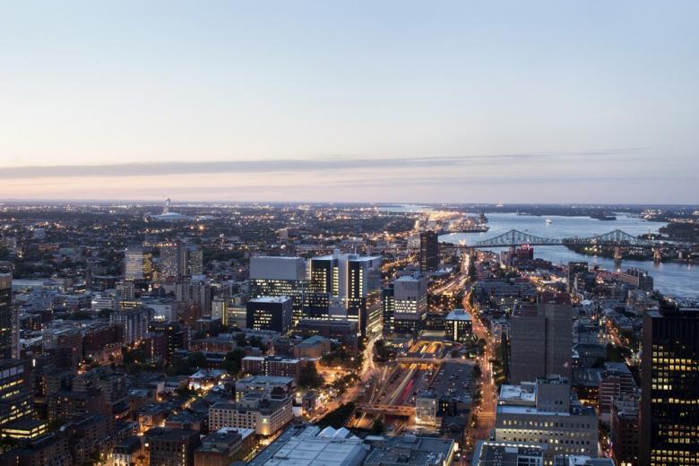 With social infrastructure and urban renewal as integral components to its design, the 22-story complex, spanning over 3 million square feet and encompassing two full city blocks, will play an important role in regenerating the neglected East-end of Montreal’s downtown core, reconnecting the city’s urban fabric and anchoring the Quartier de la Santé, Montreal’s new healthcare district. In addressing the totality of that task, the design team approached the project from all scales, including the large-scale urban element, the local neighborhood context, and the fine grain of a human component, central to its vocation as a place of healing.
