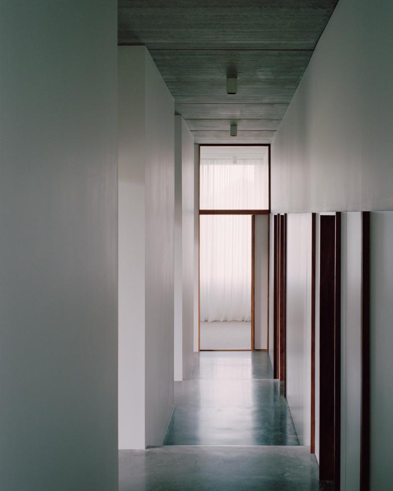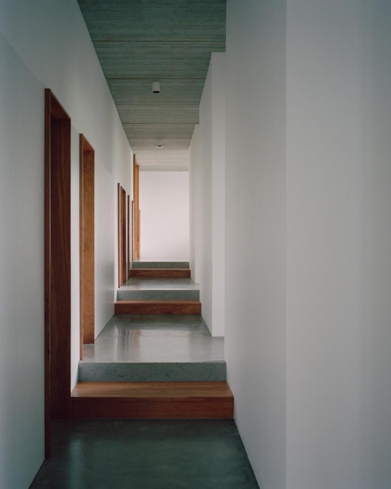 The builder has finished but the house in a sense remains incomplete. The final “design” requires considerable time. Plants need to overrun the masonry envelope, not least from two 25-meter-long elevated planter boxes. The building stands waiting for endless cycles of weather to be cast down upon it, to gain the finer patinas of age. The mass of the house and its emphatic sense of permanence, the sobriety of its masonry, and the spareness of its form, all give a sense of serene indifference, a quality it draws from the ancient landscape it finds itself in.