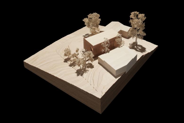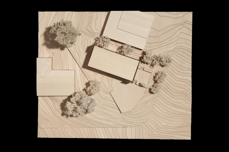 The completed house is something of a contradiction. It appears alien in the immediate suburban street yet kindred with the wider landscape, like an abstracted outcrop. The district has a scattering of monumental objects perched on spurs and ridges, which look out across the expansive land surrounding them. Robin Dodds’s St Brigid's church is visible to the north. The Euclidean form of a concrete water tower also rises up nearby. These objects feel like the house’s urban siblings.