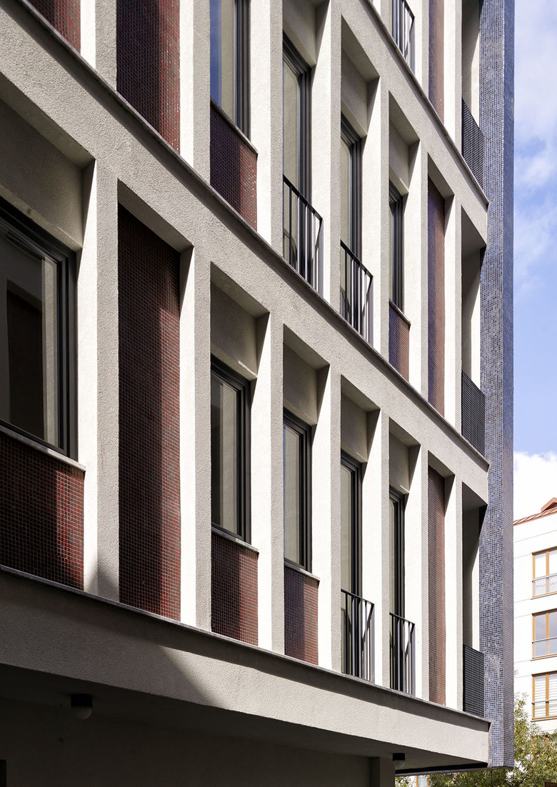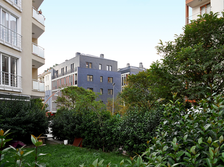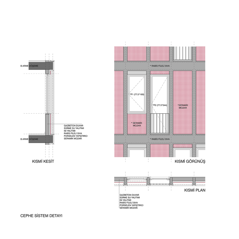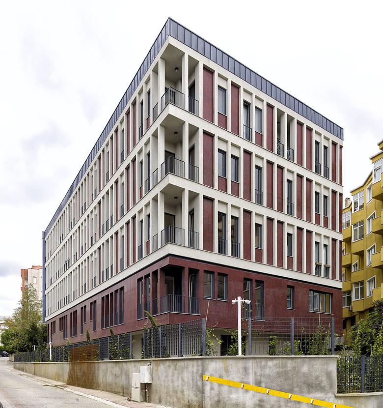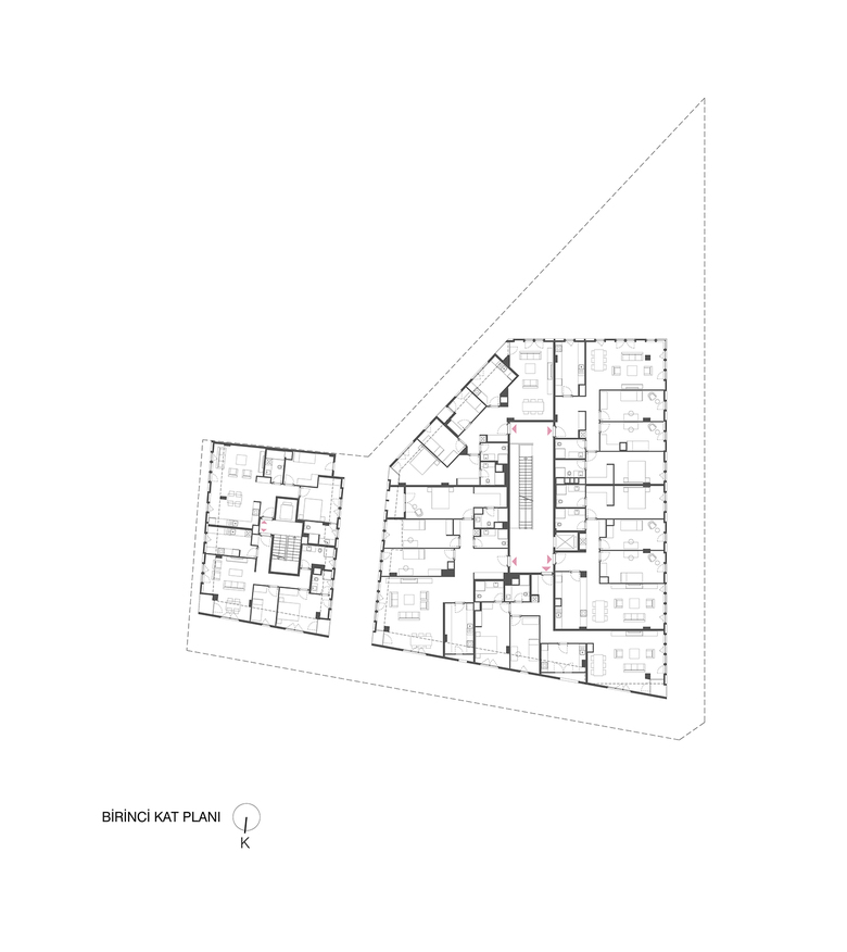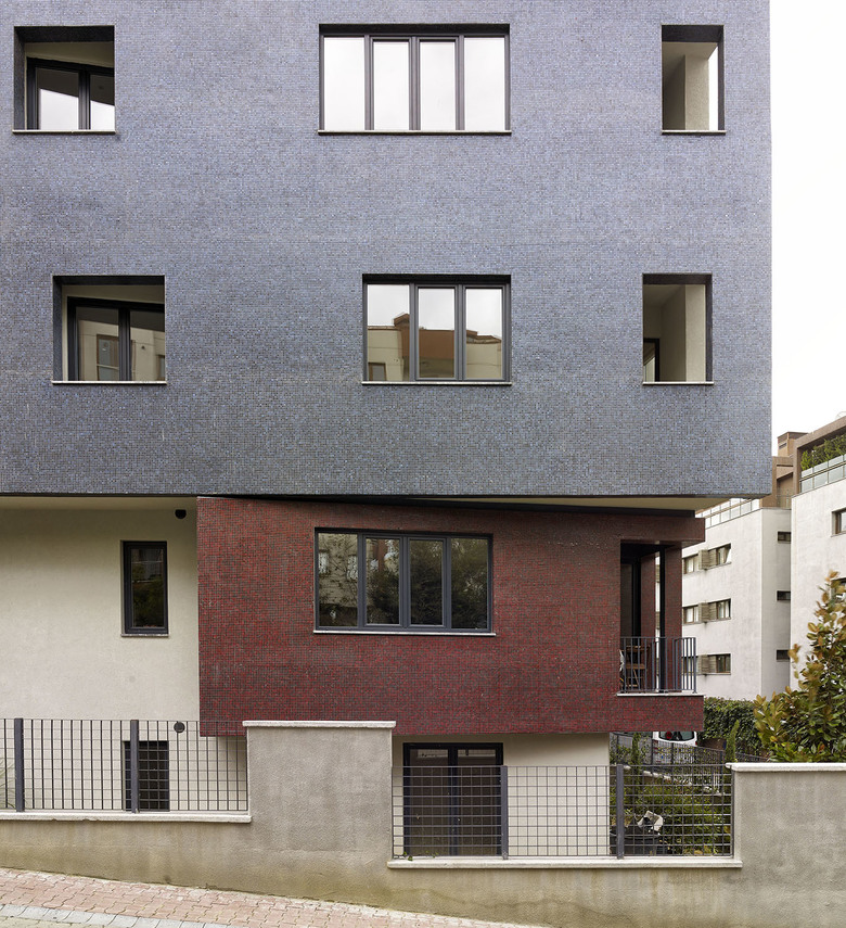 This Project was designed as two separated blocks located on adjacent plots with different regulations, merging to a corner. The two blocks with different heights 12.5 m and 15.50 m, has been unified regarding their facade clearances. Within the evolving facade of the Çamlık Street in the last 10 year, these blocks were injected with a cynic eccentricity to the existing pattern. The form emerges from the meeting of the two separately perceived prisms. The entrance of the blocks is from the Sedef Street perpendicular to the Çamlık Street and both blocks are connected from this entrance.