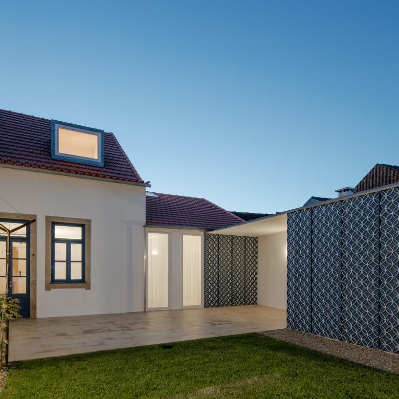The house is located in a structural artery of the city of Ovar. The site, bordering the access road and leaning against the adjacent buildings, allows the repetition of an urban model of frequent use, allows a peripheral occupation of the blocks, and liberates its interior for use mainly destined to the individual ends. In this scenario, both the secondary construction and the main house itself present a logic of implementation supported by two main elevations: the street and the inside façade. This establishes relations of a different form: more representative/formal in the elevation facing the street and more uncommitted in the inner, private elevation.