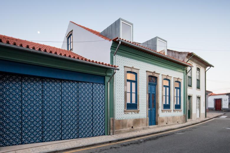 Finally, in terms of substantially, visible alterations in the elevations of the buildings, on the ground floor, and at the level of the secondary construction, it was foreseen the introduction of an almost total opening to the street, allowing the use of the respective interior space as a garage and, on the contrary, a more controlled opening of the two bedrooms to the plot. The elevations are therefore practically redone, having as principle the introduction of spans that maintain the scale of the construction, provided to the new program and its uses, but modern reinterpreting the more decorative sense of the tiles.
