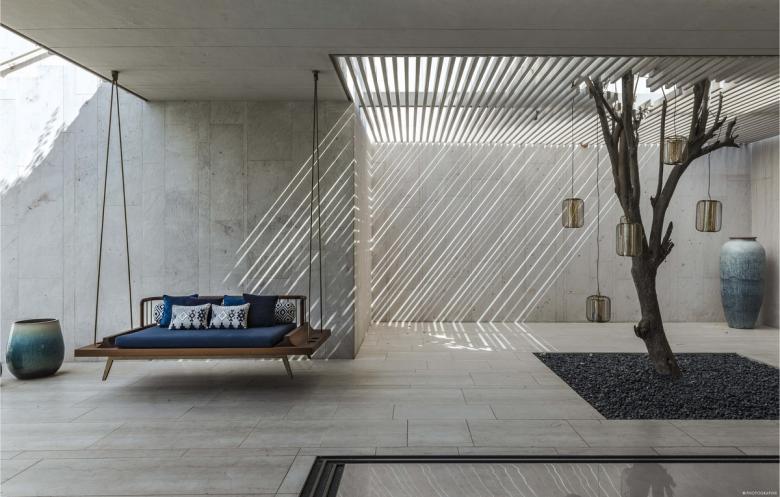 This is a private home in Ahmedabad, is an expression in Dhrangadhra stone. The stone used in many of the architectural antiquities of Ahmedabad. The stone has a mottled texture and bone coloration, available in blocks; slabs and dust from quarries nearby it became an obvious choice.