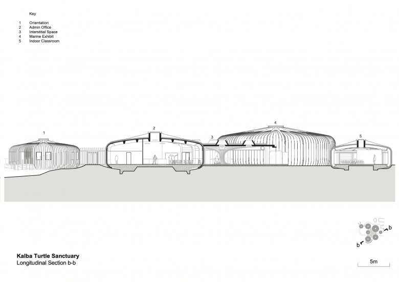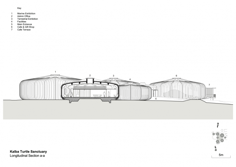 Situated on one of the most sensitive and biodiverse nature reserves in the Gulf, the Khor Kalba Turtle and Wildlife Sanctuary comprises a cluster of rounded building forms that creates a sanctuary for rehabilitating turtles and nurturing endangered birds, connecting with local initiatives and expertise.