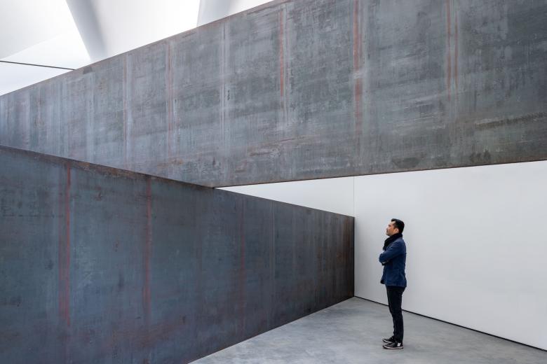 The artist, Richard Serra, who spent half a century experimenting with unconventional, industrial materials of rubber, neon and lead before his large-scale installations in steel, considers space to be his “primary material.” In some sense, it was scale and the reduction of his art to the most elemental of materials and form that gave rise to his prominence. His art gives intimate access to the emotional and existential appeal of time, timelessness and body.