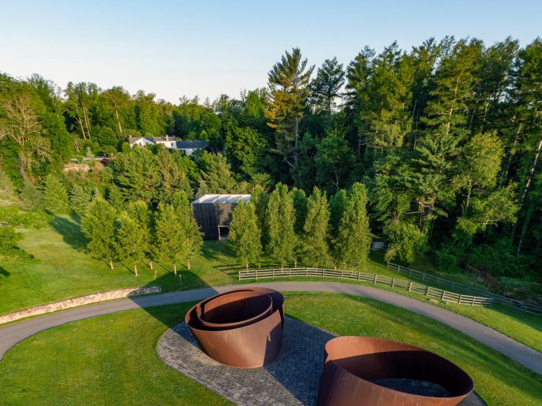On a sloping estate in Bedford, NY, the LX Pavilion stands at the intersection of minimal and cerebral, of material and space: dualities emanating from the Richard Serra sculpture, London Cross (2014), within.