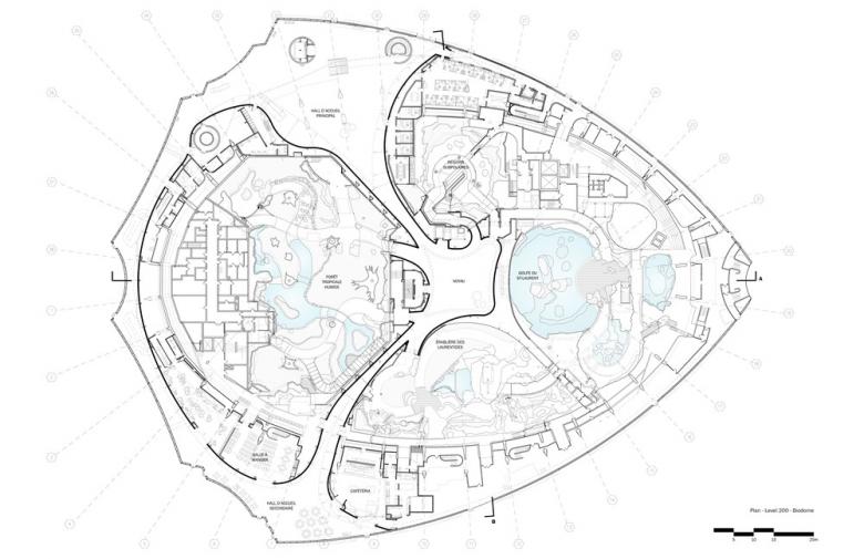 The translucent skin harmoniously interacts with the skylights above, with beveled horizons that elicit a sense of calm and infinity. The new core also amplifies the sensorial experience of visitors transitioning from its pure neutrality to the multi-sensorial discovery of its adjacent ecosystems.
