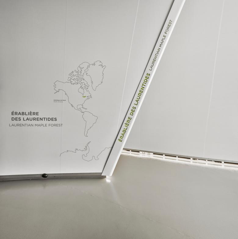 Vertically, KANVA added an entire new level above the ecosystems, accessible via walkways enabling visitors to move through the foliage of majestic trees of both the Tropical Rainforest and Gulf of St. Lawrence ecosystems. The walkways lead to a new mezzanine, offering aerial views of the various ecosystems and the pure white nucleus. The new mezzanine also serves as a technical floor, with interactive educational exhibits and insight into the elaborate machinery required to preserve the facility’s delicate ecosystems.