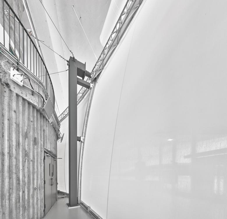 With a massive open space now forming the core between the ecosystems, KANVA parametrically designed a living skin that they could wrap around the ecosystems, and which would serve as a guiding accompaniment to visitors. With exceptionally complicated structural engineering, the installation of the prefabricated pure white, biophilic skin was a monumental task. With no room for error, the skin was curved and stretched around a bowed aluminum structure, using tension, cantilevering, and triangular beams for suspension, and itself anchored to a primary steel structure. Mechanical junctions were also incorporated in order to accommodate a variety of movements and allow for on-site adjustments.