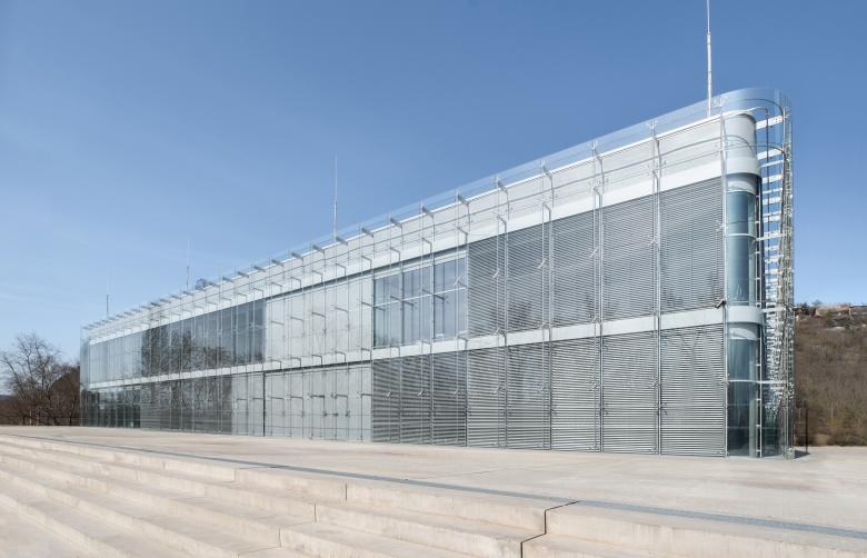 The external structural glazing is designed primarily as an effective acoustic protection against the noise from a six-lane ring road in the immediate vicinity of the building. Double-skin façade allows for natural ventilation and regulated sun shading of the interior space. Rounded glass corners are a link to the original architecture.