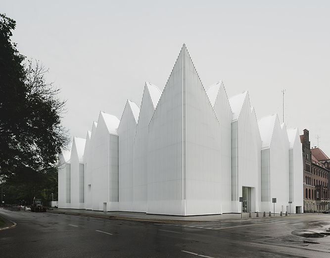 This is a synthetic project that shares identifying traits with its surrounding context. Mass, verticality and the shape of the roof lines are dominant, connecting the hall with the rest of the city.