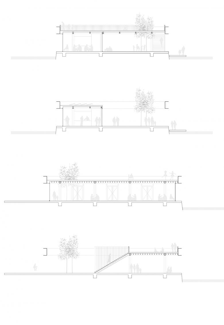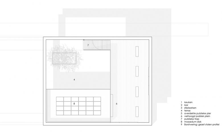 The structure facilitates a special combination of public and private activities on a unique site in the city. The central pier in the harbour was built for grain transhipment in the early 20th century, but became a place for public events and leisure activities, in more recent times. Today it has been transformed into a place where the restaurant RAK shares space with a public plateau that also covers the public space on the pier. The structure benefits from the qualities of the pier in various ways: The restaurant is positioned close to the water and offers visitors a beautiful view, while keeping 2/3 of the plot area open for public use. The roof structure also provides for the viewing deck, and acts as a shelter for the rain. As a result, events and leisure activities can take place in various ways.