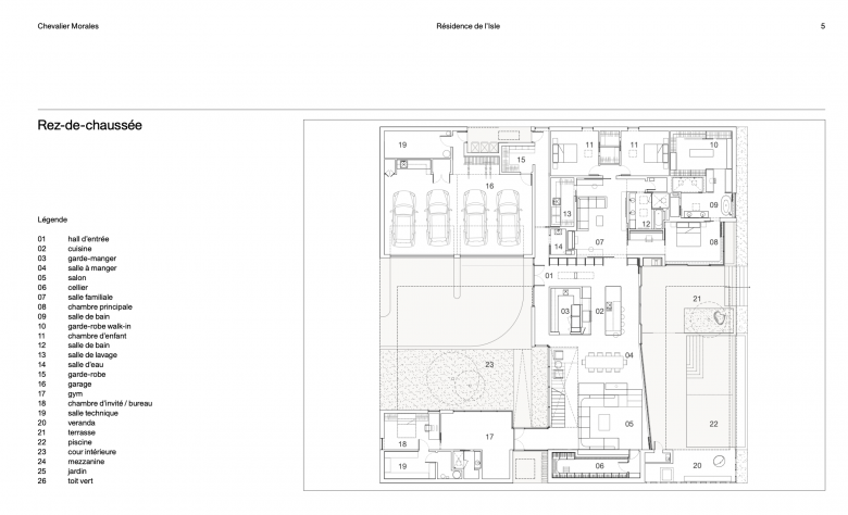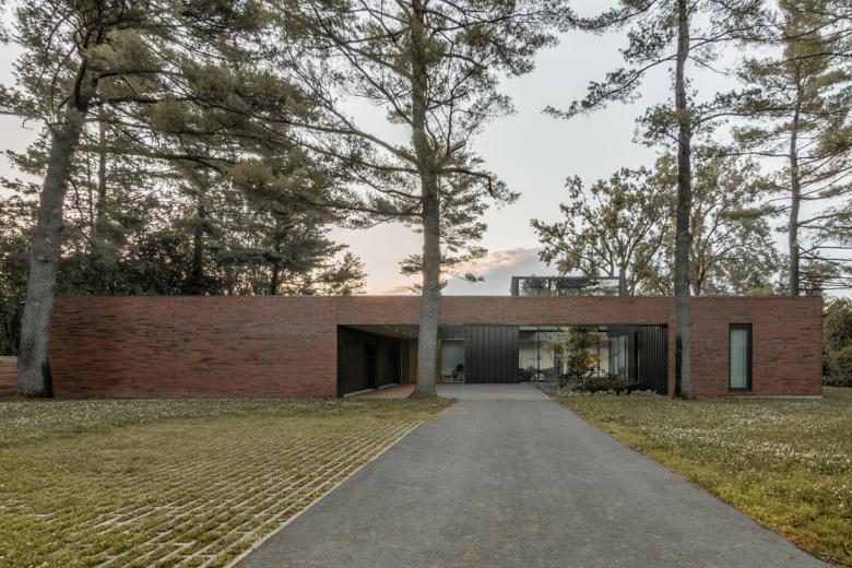 Designed for a couple and their two children, the Residence de l'Isle is a reinterpretation of modern American houses of the mid-20th century. This single-family home, built on the banks of a river, in the northern suburbs of Montreal, is the result of an architectural conversation with the design work of the architects of that era. Hidden behind a row of tall, mature pines, its siting allows the existing natural vegetation to become an integral part of the project while optimizing the views towards the water.
