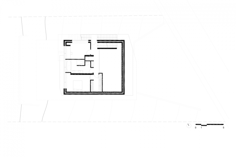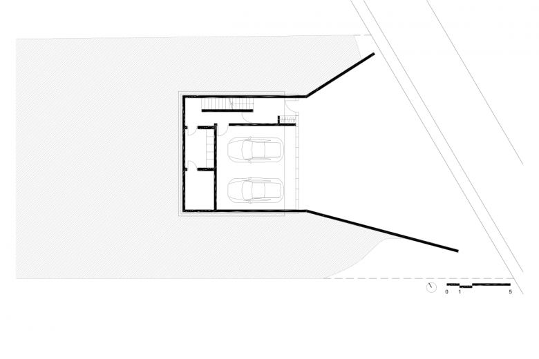 In order to translate this program in an economic way, Studio Hertweck has inscribed a very simple cube into the slope. Garage and storage rooms were accommodated on the ground floor, the children's bedrooms with a bathroom on the first floor. On the second floor, an open living area was created, which opens onto a terrace towards the valley and at the back onto a garden. On the third floor, the architect located the parents' area with their bedroom, bathroom, and home office.