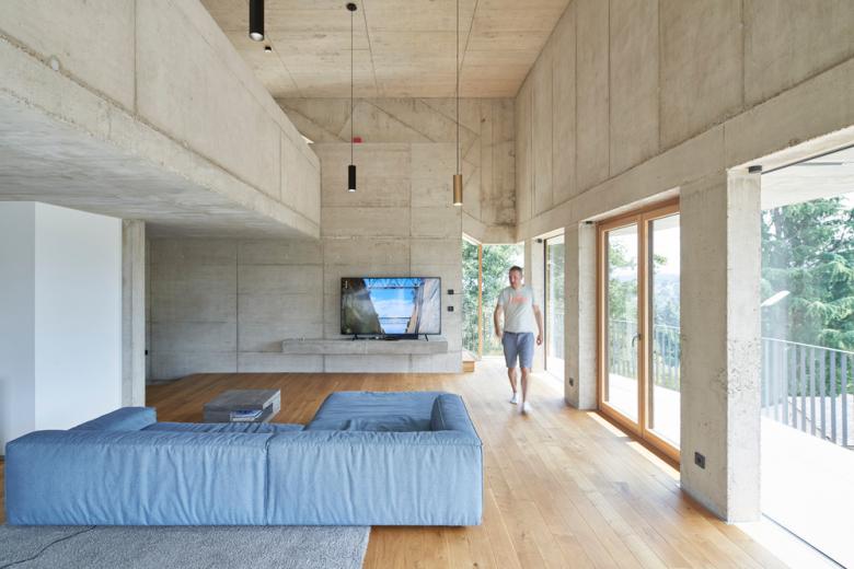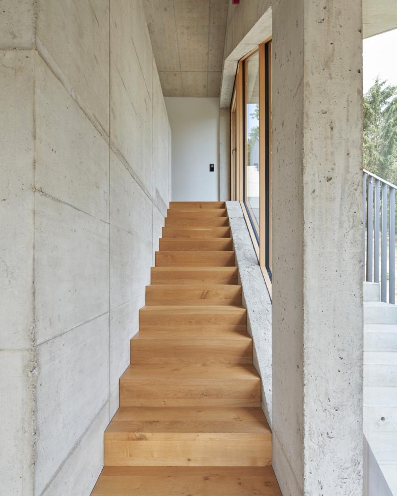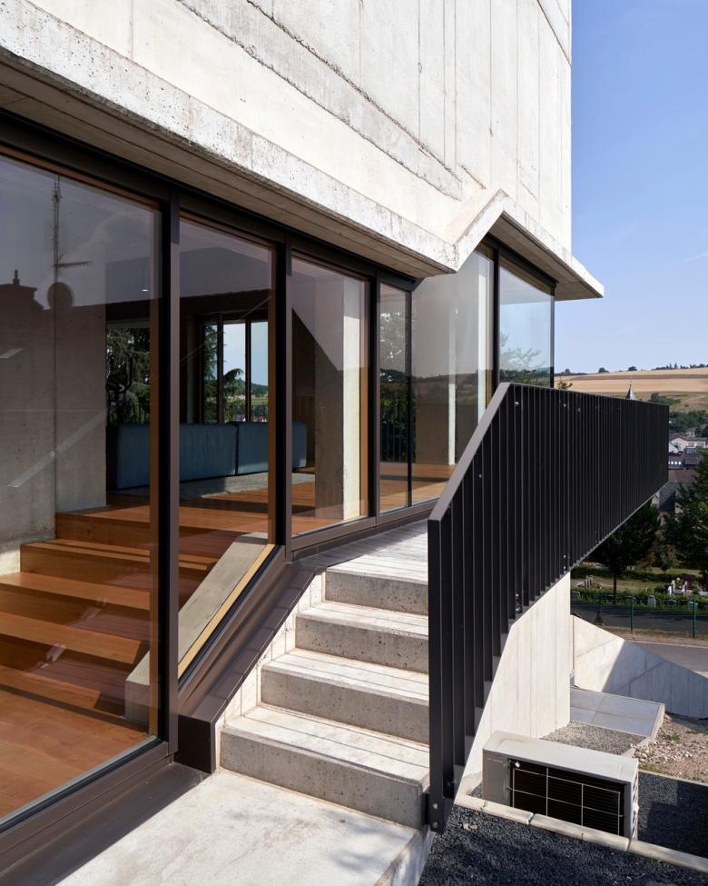 The garden has been connected to the roof terrace by a set of terraces and outside stairs so that people can walk around the house while opening up beautiful views of the landscape. The reduction in terms of materials and the use of unfinished double-shell in-situ concrete walls not only has aesthetic value but also enabled the architect to dispense with some trades such as plastering or scaffolding.