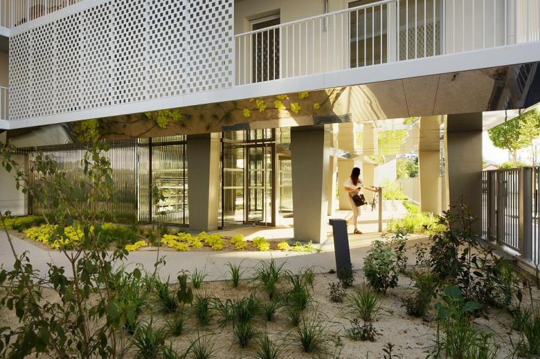 The buildings are raised off the ground in order to allow the eye to wander between the structures and let the natural light penetrate the site. These open ground floors are connected to each other via the road. The physical and visual network of entrances becomes a unifying social link. The sequence of housing entrances is designed as interior prolongations of the road’s exterior space. The hallways become transparent spaces with dual aspect views. The voids between buildings and the road are landscaped in order to create a large, planted, communal garden. Plants are chosen depending on location and exposure. The extension of public space is at the heart of the system, and is a concept that will create a strong link between shared spaces, the road and the project.
