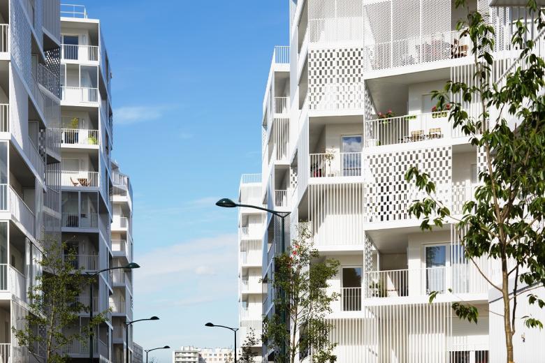 Program: 170 private ownership apartments + 160 social housing apartments + nursery school + crèche + parking