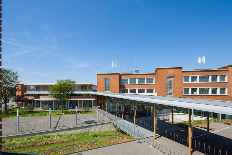 Complete renovation, wooden structural extensions on brick ensemble, green roofs to harvest rainwater, windmills and solar chimneys to light and provide natural ventilation.