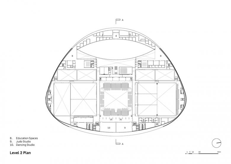 The overriding aim is to emphasize the importance of sport and exercise through learning and engagement, for the amateur as well as the elite athlete, using sport as the inspiration to deliver a healthier society. The 33,000m² sports campus includes a gymnastics hall, beach sports hall, spectator arena and a multi-purpose sports hall, as well as a variety of sports science and education spaces.