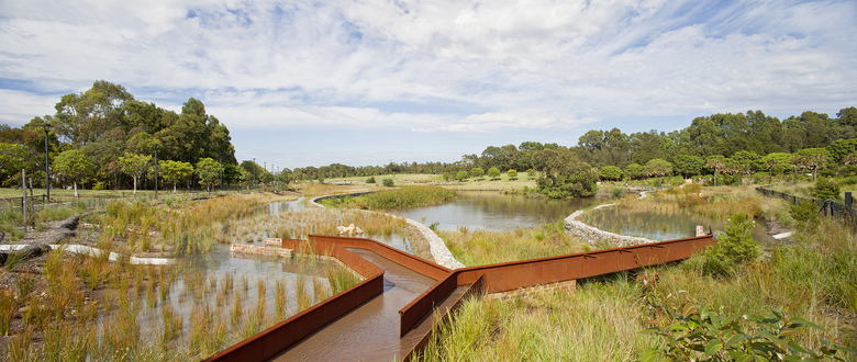 After an intensive process of ‘easing in’, the water re-use project is now fully operational and intrinsically linked with its park setting. The bioretention wetlands not only capture and clean the equivalent measure of 340 Olympic-sized swimming pools worth per annum, but successfully improve local water quality, habitat and reduces potable water consumption in the area. The park’s fauna and flora is thriving, with new habitats created and existing ones protected and enhanced throughout the park.