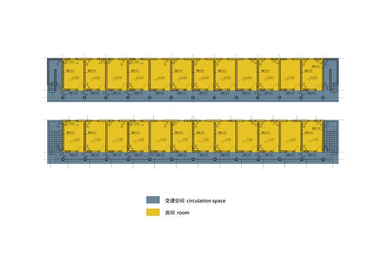 The design scheme shows its practical flexibility. In the face of uncertain investment plans, the design interlinks the initial partial development, the later overall development, and possible future overall transformation plan. The main structure of the building is inclusive, and different parts show their own independences in functional line, which provides the possibility for development behavior at different stages. The building has three relatively independent entrances and vertical traffic lines: the largest central entrance hall is connected to the four guest rooms upstairs, and two three-bedroom and one-hall groups with independent vertical traffic lines are sitting in each side. Each one is quite managed independently.