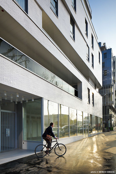 The operation of this mixed-use building for residential use (by all ages) adheres to the logic of a stacking of trays.