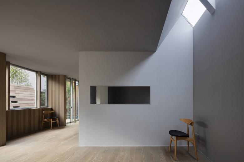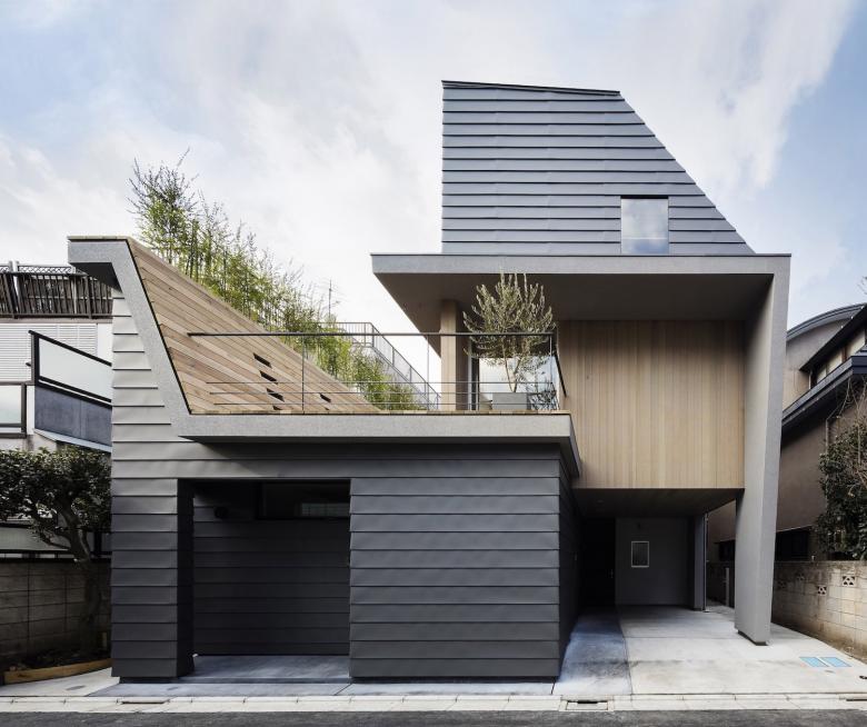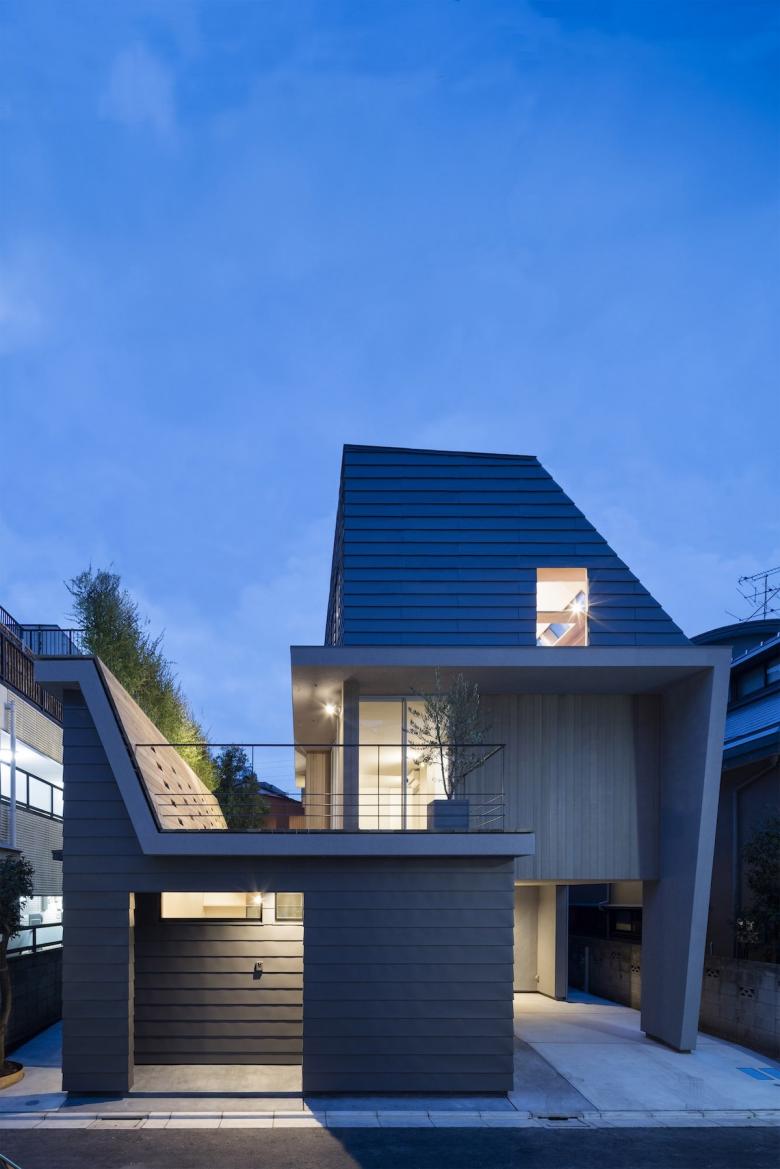 Designing residential architecture in densely developed areas tests our ability as architects to respond both to the surrounding circumstances and the individual needs of the residents. In this case, we used an unusual three-dimensional form to respond to the contradictory demands of complying with building codes related to building height and obstruction of light and views, securing adequate privacy and distance from surrounding buildings, and effectively bringing light into the living spaces.
