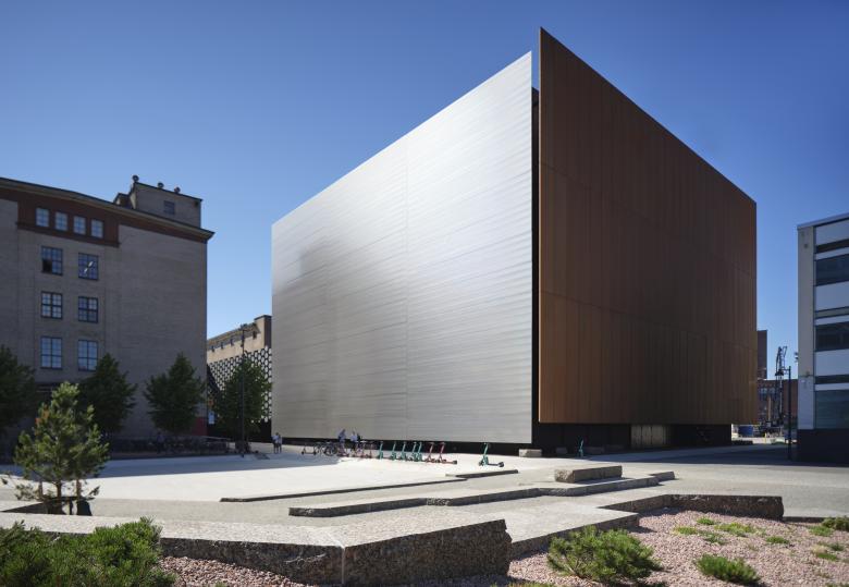Dance House is a new building located within a former 1940’s Cable Factory, the largest cultural center in Finland. The architecture takes its inspiration from dance, playing with illusions of lightness and heaviness. The building has a weightless quality with its two suspended steel elevations. One reflective and immaterial, the other robust with a rusted finish. The building’s industrial aesthetic also reads like a machine. The state-of-the-art black box theatres are its internal engine. A glazed courtyard will serve as an important shared public space for the Cable Factory as a whole. Dancers and performers will complete the architecture.