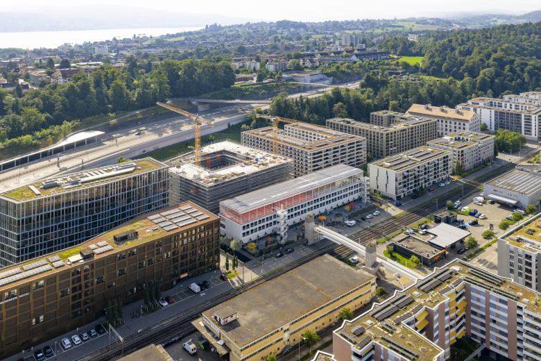 The sustainable urban neighborhood GreenCity is being built on a former industrial site under the guiding principle of the 2000-watt society. The residential form includes service and voluntary community offerings and good networking in the neighborhood.