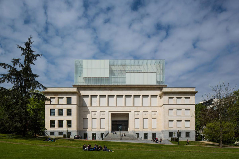 Built in the 1930s, the “George Eastman” building was originally a dental clinic, is located in Leopold Park, at the heart of the European Quarter of Brussels. By creating a House of European History at this location, the park and its history are brought together with the current European condition. The existing building, in need of repairs, will be expanded with a transparent implant. The free exhibition box arrangement inside the glazed volume is purposely placed in contrast to the symmetry of the older building. During the day, the printed glass envelope frames the dynamic interior activities and filters the view; the unsophisticated